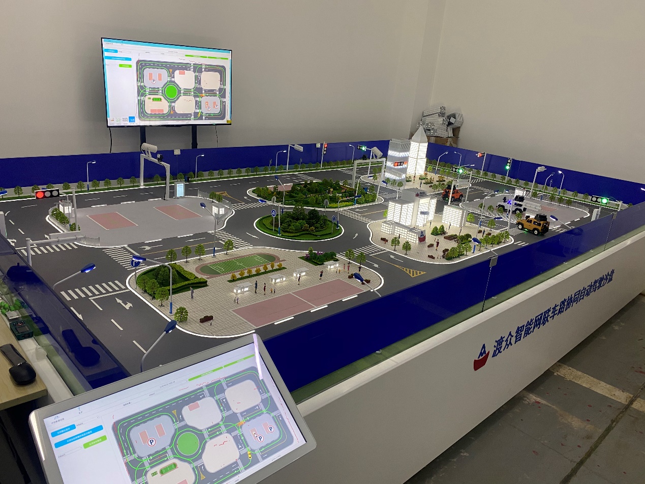 渡眾機器人智能交通車路協同沙盤可以模擬真實智能交通中的智能車、智慧路網、模擬駕駛、中控系統等,在實驗室條件下完成對車、人、物、路、環境等有效智能監控、調度、管理的無人駕駛和智慧交通的先導實驗。